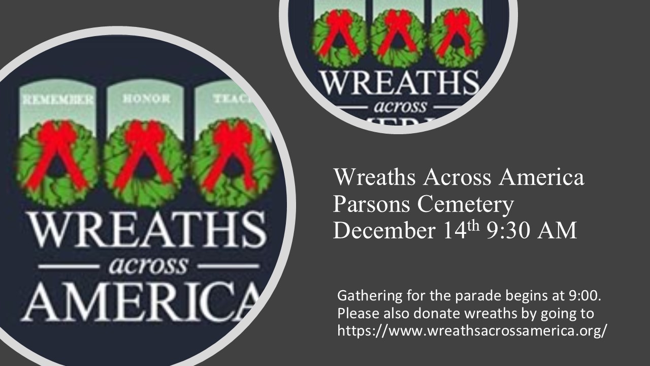 Please join Parsons Cemetery on December 14 for their annual Wreaths Across America event to honor the nearly 1,500 veterans buried there. Gathering for the parade begins at 9:00 a.m. Please also consider donating wreaths by visiting the Wreaths Across America website. St. Peter’s parishioners can also donate wreaths through Cub Scout Pack 151, who are using it as a fundraiser.